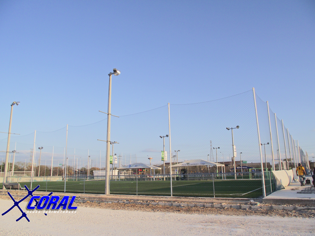 Red perimetral de 3 pulgadas ideal para campos de futbol y canchas de basquetbol.